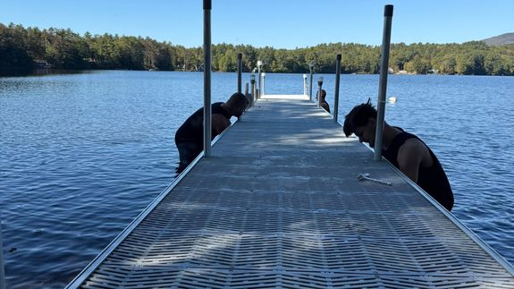 New Hampshire winters and ice formation can damage docks if left in the water too long. Dock Dogs Construction begins fall removals shortly after Columbus Day Weekend and ensures all docks are removed before ice formation, typically by Thanksgiving.